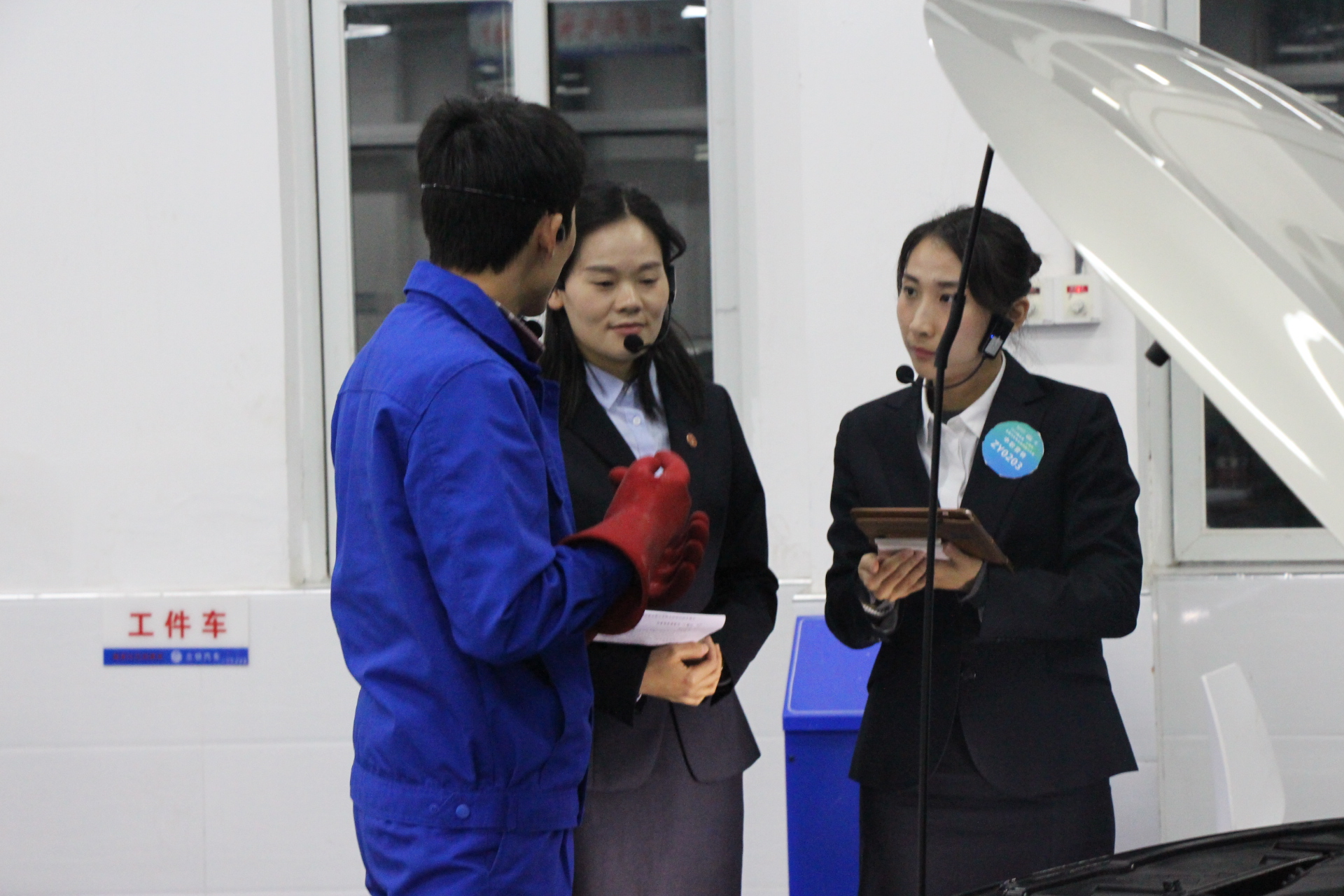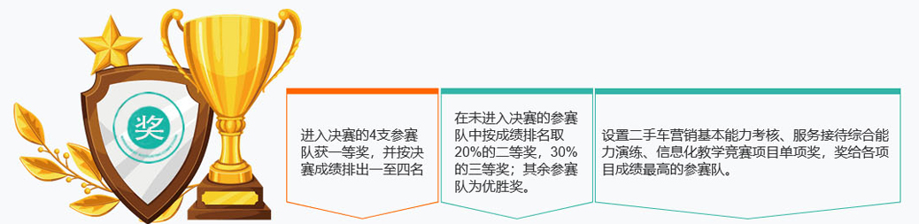 2.预赛:预赛分为三个项目:第一项目为“二手车营销基本能力考核”,以真实工作场景为背景,在实车与智能服务终端上操作进行;第二项目为“服务接待综合能力演练”,在真实工作情境中进行;第三项目为“信息化教学”,需参赛教师根据选拔赛提交的微课进行说课。